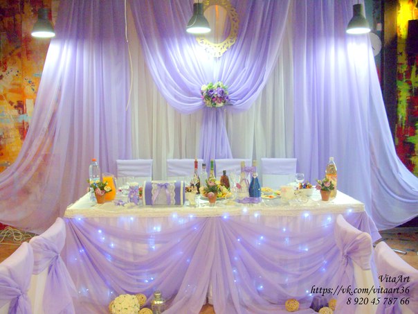 Направление нашей работы — это свадьбы. Мы оформляем банкетные залы и выездные регистрации тканями, лентами и другими милыми душевными мелочами.